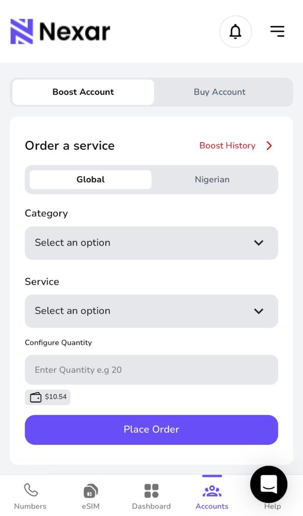 - Choose the platform and boost type e.g; followers, likes, views, or subscribers.