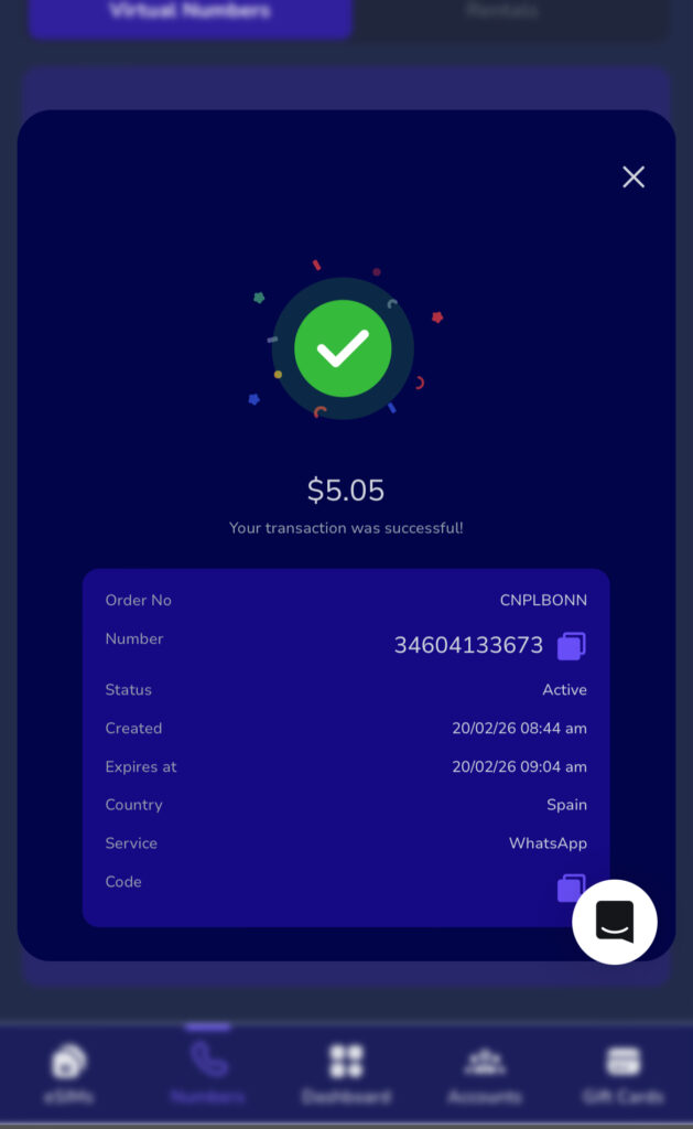 Step 5: Receive Your Spain Virtual Number Instantly