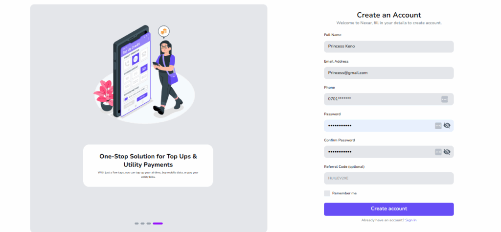 You can sign up with your email or Nigerian phone number. The process is quick, and you can access your dashboard immediately.