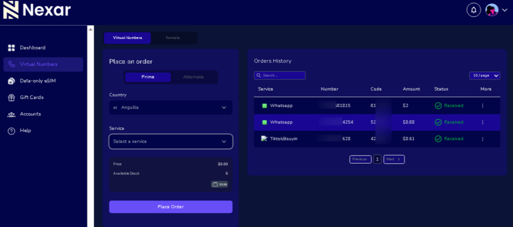 Use your new number on any platform and receive your OTP Anguilla Virtual Number instantly in your order page or order history .