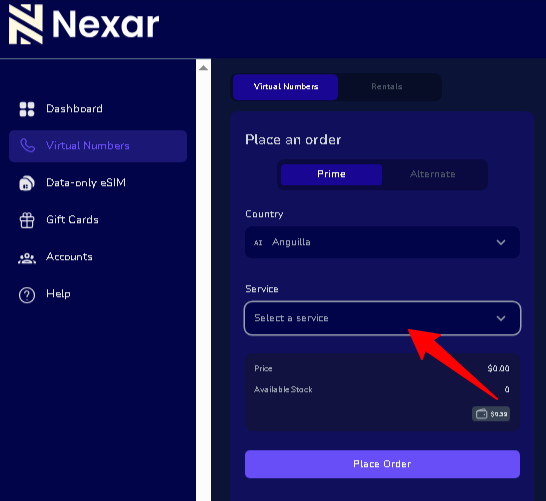 Go to the Virtual Numbers section and select Anguilla Virtual Number from the available countries.