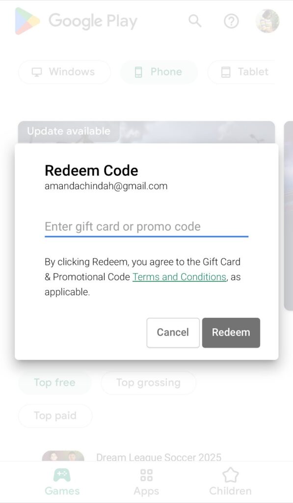 If you prefer using a laptop or desktop, you can also redeem your Google Play gift card through your browser: